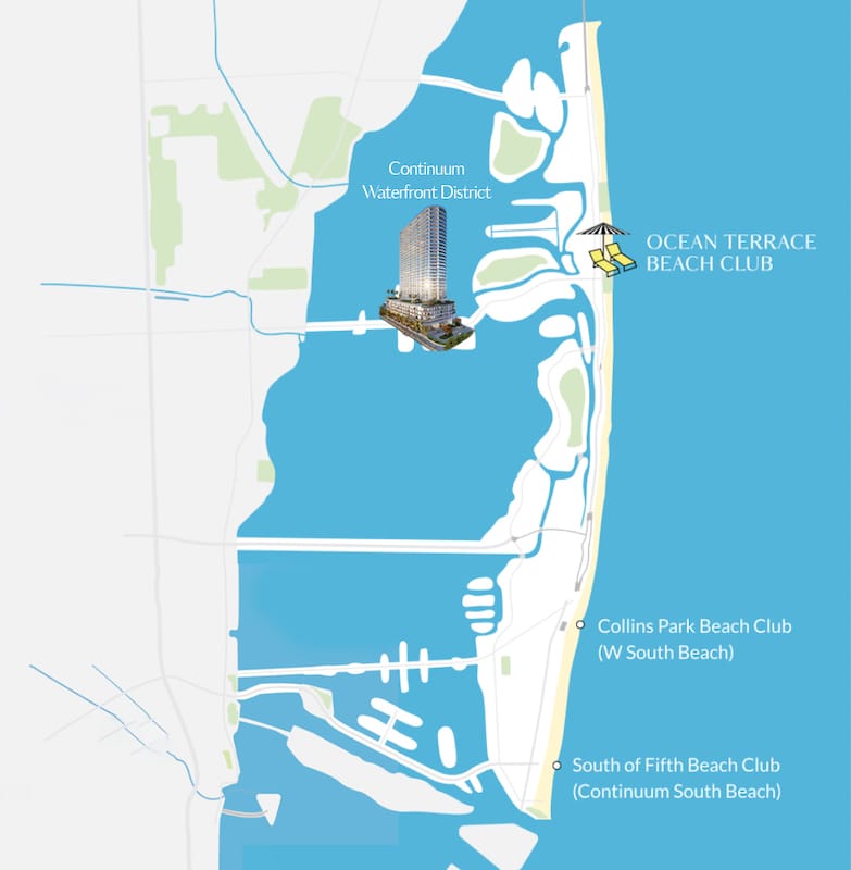 North Beach 75. Cadde’de, projemize çok yakın konumda yer alan Ocean Terrace Beach Club’da VIP ayrıcalıklar sizi bekliyor. Daire alım kontratınızın imzalanmasıyla birlikte, Miami’nin en prestijli kumsalları arasında yer alan W South Beach Oteli’nin önündeki Collins Park Beach Club ve South of Fifth Beach Club’a anında erişim ayrıcalığına sahip olursunuz.